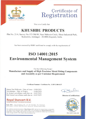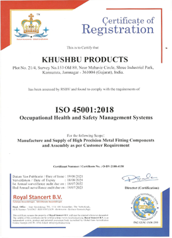 Khushbu Products is One Of The Leading And Pioneer Manufacturer Of Brass Precision Components. We are associated With The Manufacturing, Trading Of Various Products of Gas Cylinder Valves Part, Pipe Fitting Insert, Precision Auto Parts, Earthing Accessories Parts, etc.. in Domestic & International Market Since 1995 With Brand Name Of KHUSHBU.